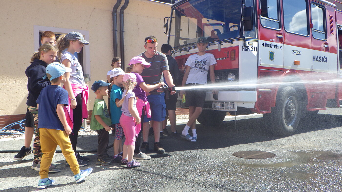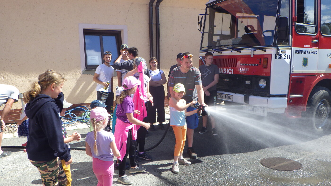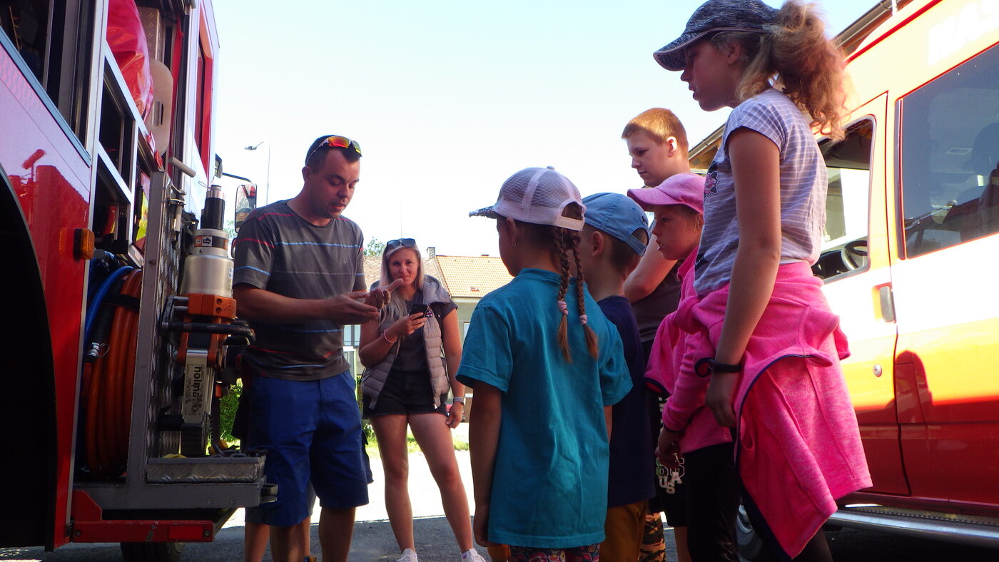 Během týdne se za námi do hasičské zbrojnice přejeli dvakrát podívat děti z příměstského tábora "Život na vesnici Třebosice"